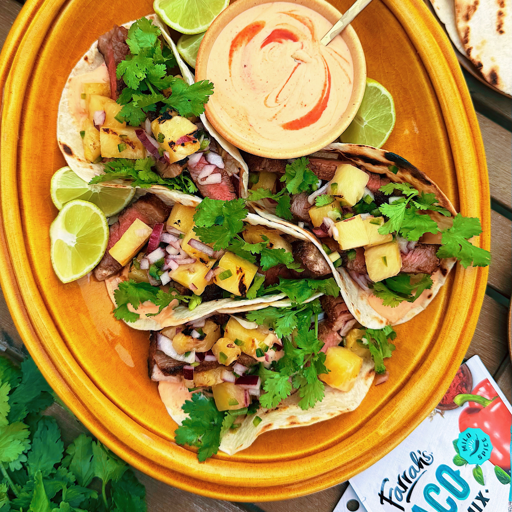 BBQ CHIPOTLE BEEF PINEAPPLE SALSA TACOS